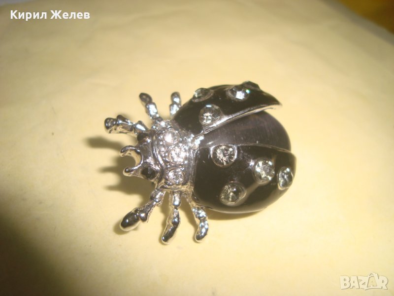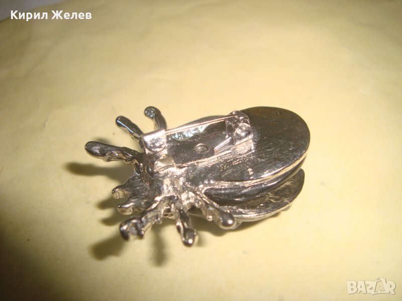 СРЕБРИСТА БРОШКА - КАЛИНКА с ЦИРКОНИ и ЕМАЙ-ЛАК и ЦВЕТЕН КРИСТАЛ 22305