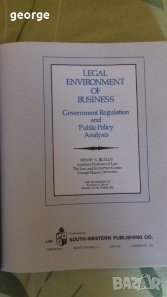 Legal Environment of Business - Henry N. Butler Цена : 20лв. → Обява 32985881