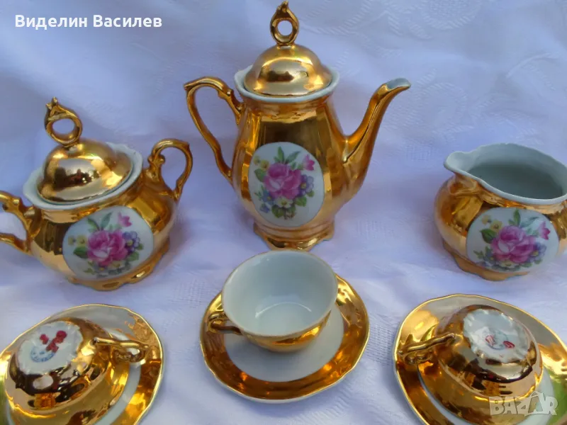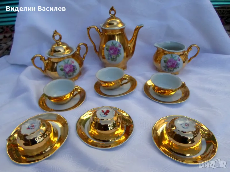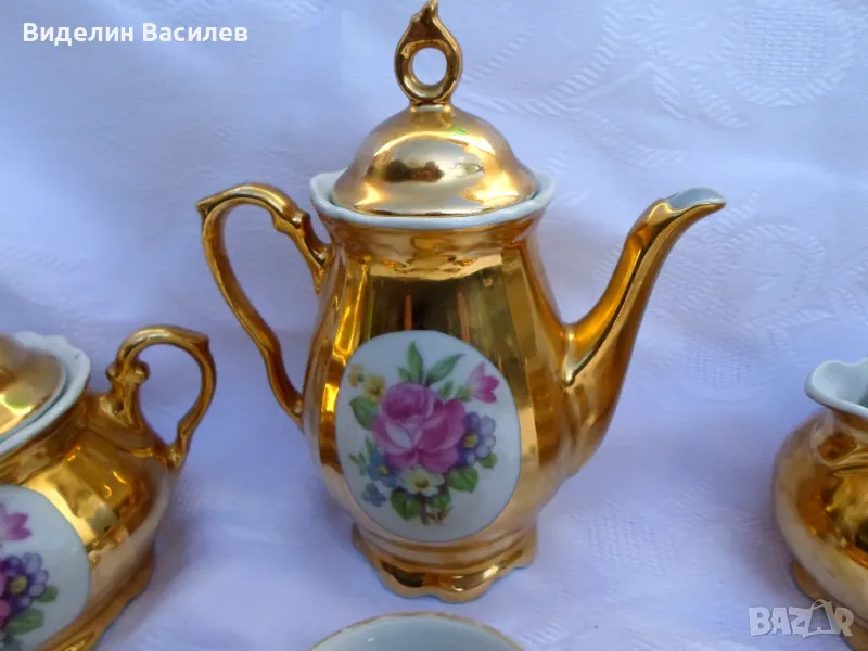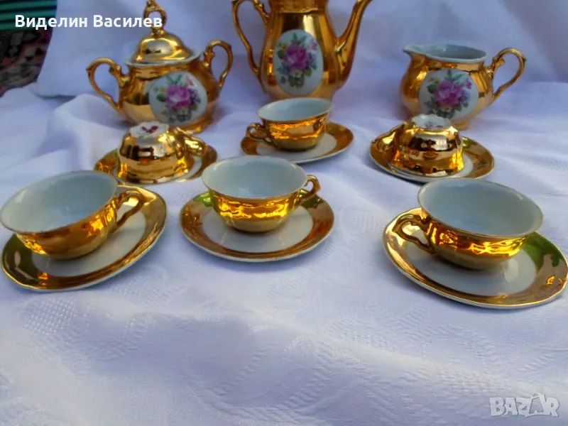Порцеланов "златен"сервиз за кафе състояние, неразличимо от ново. Цена 199 лв.