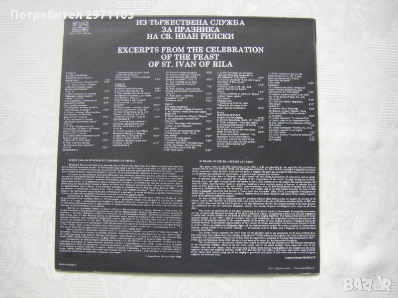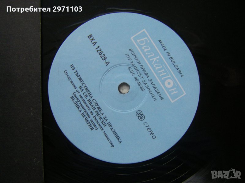 Грамофонна плоча - ВХА 12629 - Из Тържествена служба за празника на Св. Иван Рилски, [отслужена от монасите на Рилския манастир]