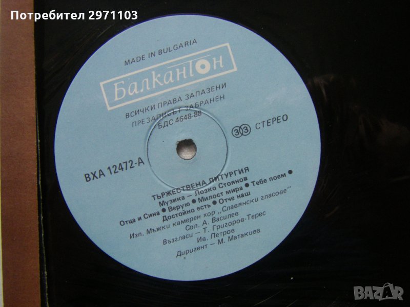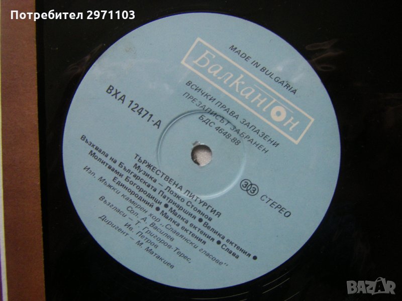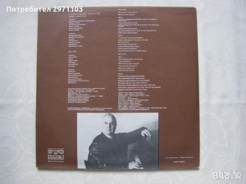 Грамофонна плоча - .ВХА 12471/72 - Тържествена Литургия - изпълнява мъжки камерен хор Славянски гласове ,диригент Методи Метакиев