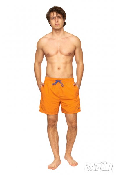 Мъжки бордшорти, направени от бързосъхнеща, дишаща и олекотена материя. Имат улравиолетова защита SPF 50 UV, удбни странични джобове за дребни предмети и връв за пристягане на талията. Удобен бандаж от мрежеста и проветрива материя. Контрастните шевове и сини връзки допълват ефектният завършен вид на панталоните.