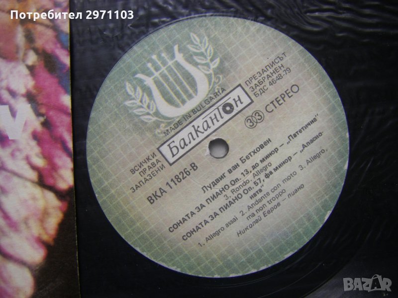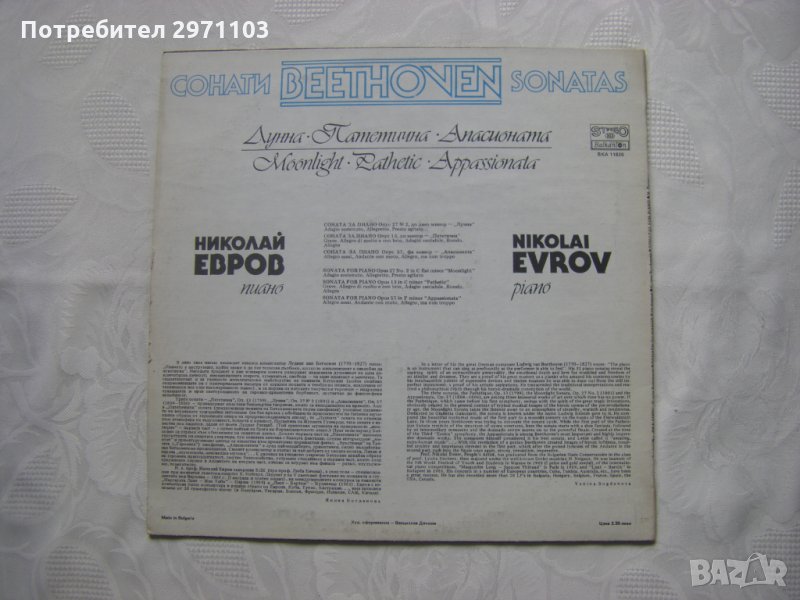 Грамофонна плоча - ВКА 11826 - Лудвиг ван Бетховен. Сонати за пиано. Изпълнява Николай Евров