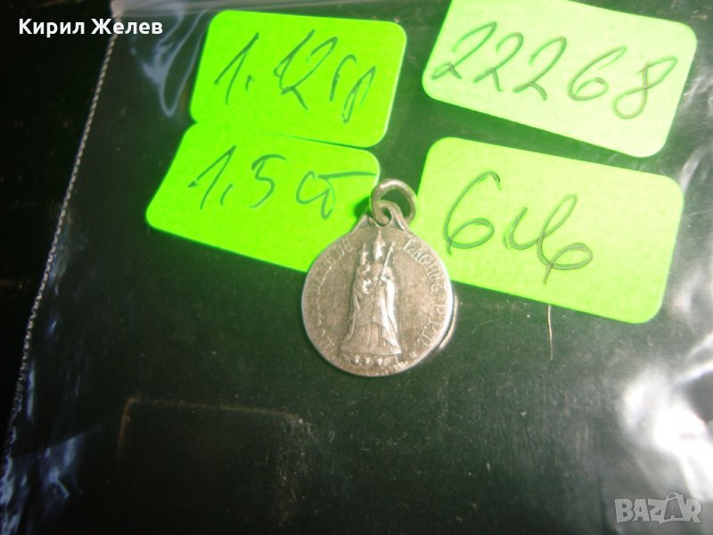 СТАРА СРЕБЪРНА или ПОСРЕБРЕНА ИКОНА МИНИАТЮРА ДВУСТРАННА МЕДАЛЬОН КАТОЛИЧЕСКА 22268