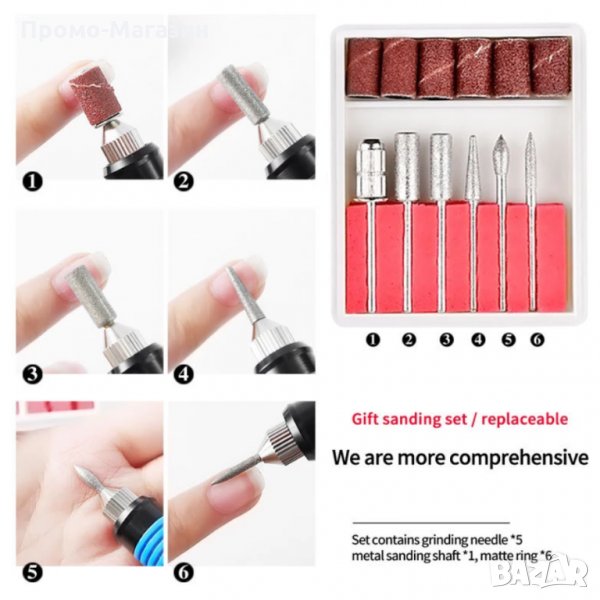 -1 бр., Захранващ кабел USB.-6 бр., Шкурки.