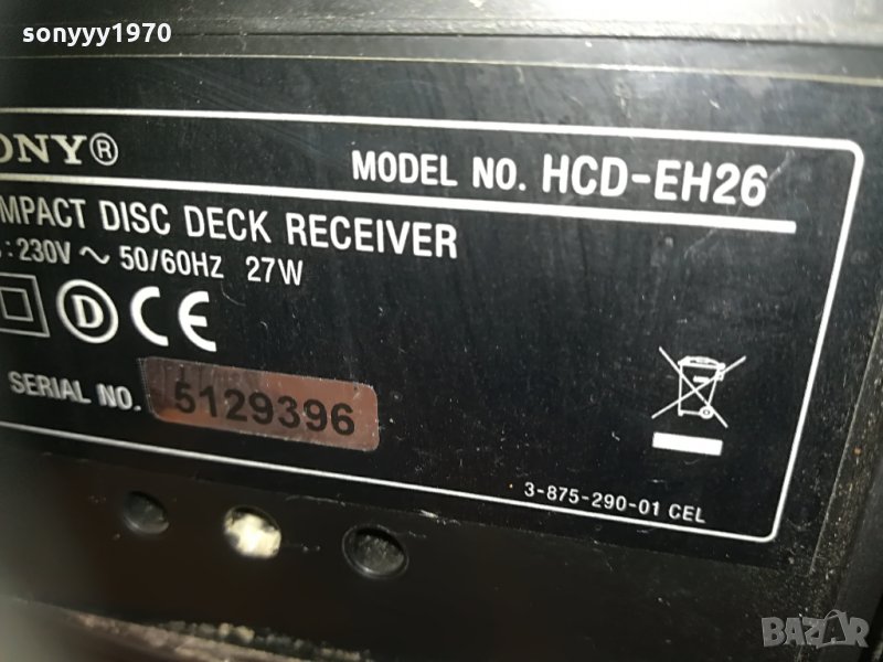 sony hcd-eh26 usb/aux/cd/deck receiver-внос франция работи всичко и на флашка и цд и тунер и усилвател са здрави-дека провлачва-изходи за колони от 4 ома-от днес 28.02.22г пращаме със спиди или еконт с преглед и тест след превод на капаро за куриерската услуга поради зачестили некоректни потребители-поръчки само тук в саита! по телефона и със смс не! краини цени! бартери не правиме! всеки ден нови неща-още 2-3 наши обяви тук