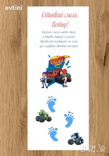Ето тук се включваме и ние като Ви изработим платно за прощъпулник според Вашите желания и персонализирано с името на детето и датата на това събитие.