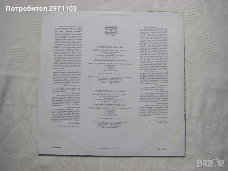Грамофонна плоча - ВКА 10613 - Вера Дренкова - пиано