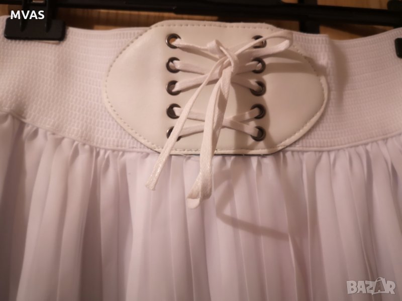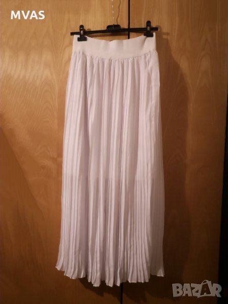 Нова лятна бяла дълга плисирана пола. Отдолу има по-къс хастар. Има стягащ се колан.