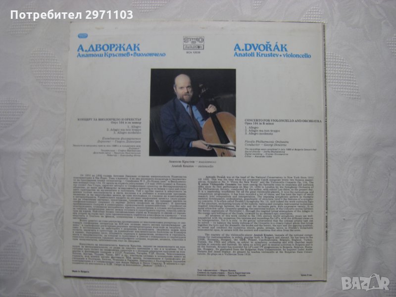 Грамофонна плоча - ВСА 12038 - Антонин Дворжак.Концерт в си минор за виолончело и оркестър
