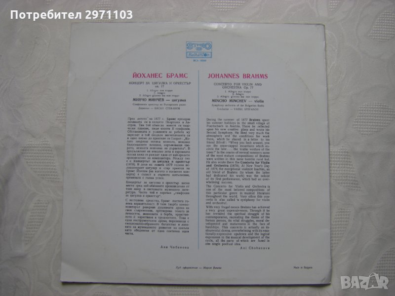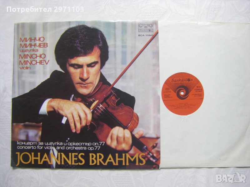 Грамофонна плоча - ВСА 10349 - Йоханес Брамс. Концерт за цигулка и оркестър оп. 77. Изп. Минчо Минчев - цигулка, със СОБР, дир. Васил Стефанов