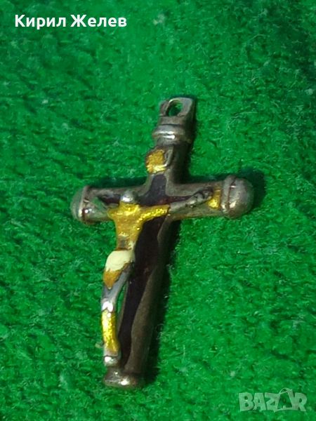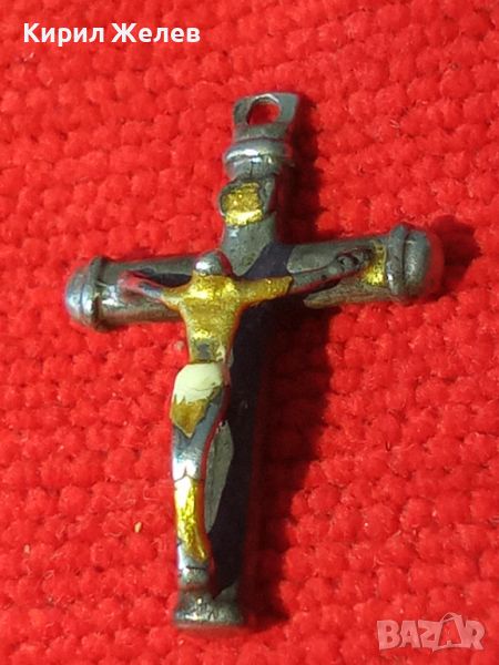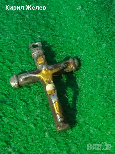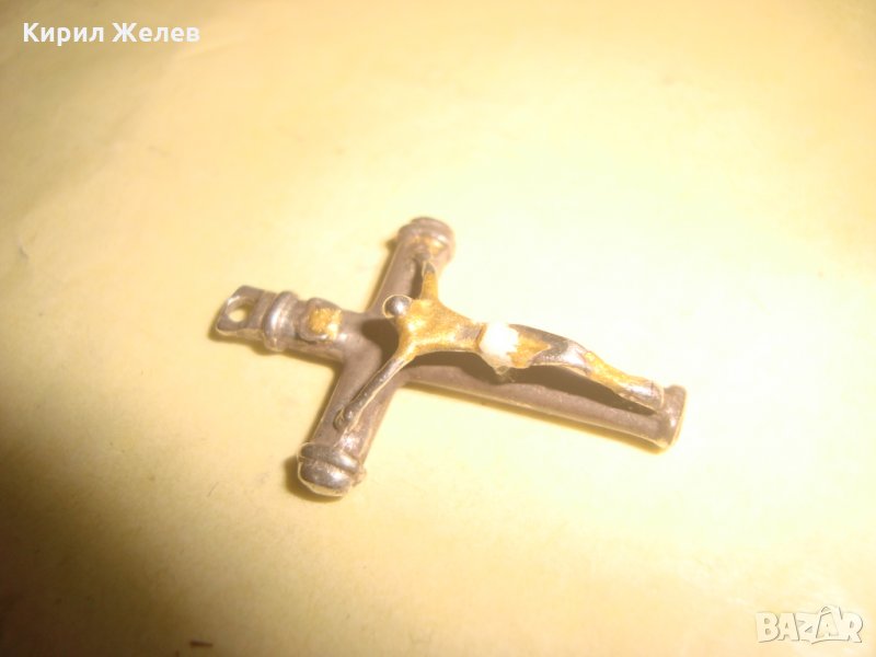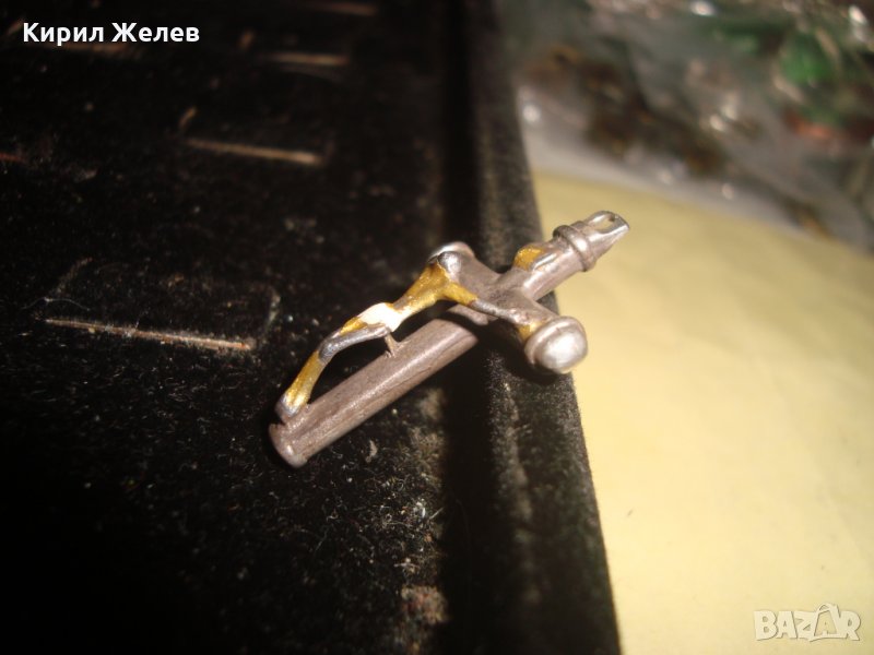 СТАРО СРЕБЪРНО РАЗПЯТИЕ КРЪСТ ПОЗЛАТЕНО СРЕБРО МАЙСТОРСКА ИЗРАБОТКА РЯДКО НАГРЪДНО 20542