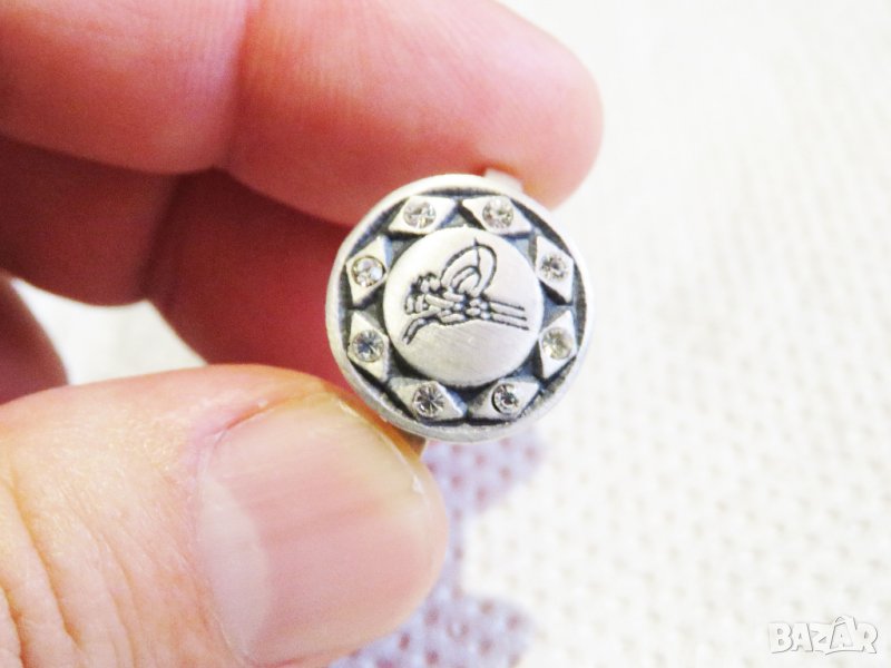 стар османски сребърен пръстен с тугра - османска монограма и камъни .