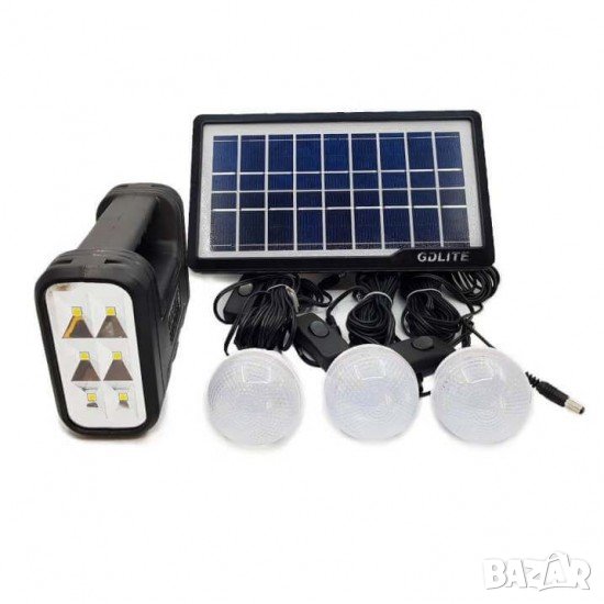 с АКУМУЛАТОР и СОЛАРЕН ПАНЕЛ + 3бр. LED диодни КРУШКИ / ЛАМПИ + ЧЕЛНИК Модел: GDLITE GD-8007