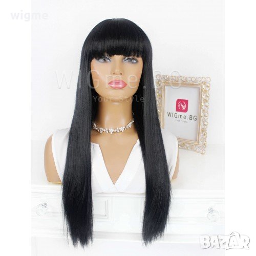 Дълга права черна перука с бретон Амбър е с универсален размер – можете да регулирате широчината й с помощта на специални ластици, които задържат стабилно перуката върху главата Ви и предпазват от разместване. Това е красива, естествено изглеждаща реалистична перука подходяща за ежедневно носене или тематично събитие.