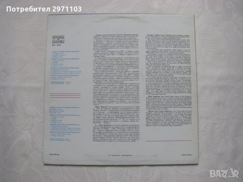 Грамофонна плоча - ВКА 10700 - Парашкев Хаджиев. Сонати за цигулка и пиано
