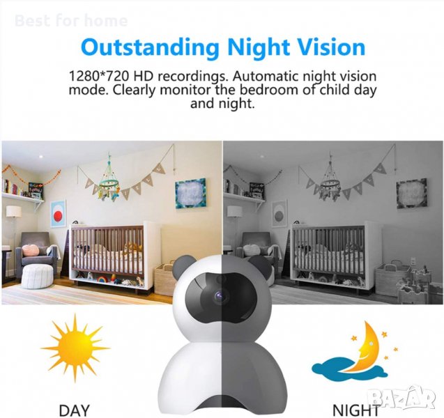 【Нощно виждане и 1080P HD видео】 1920 * 1080P ултра висока разделителна способност, ще ви донесе по-ясна картина. Вградената в камерата инфрачервена LED светлина и тя автоматично ще отвори функцията за нощно виждане през нощта. Гарантира безопасността на вашия дом и семейството ви денем и нощем.