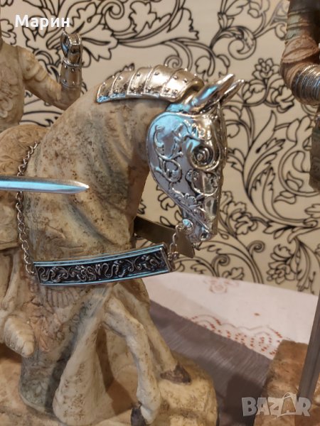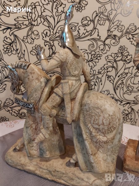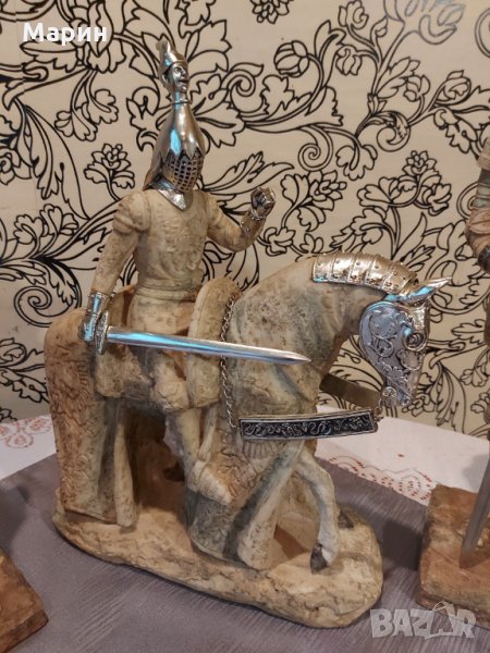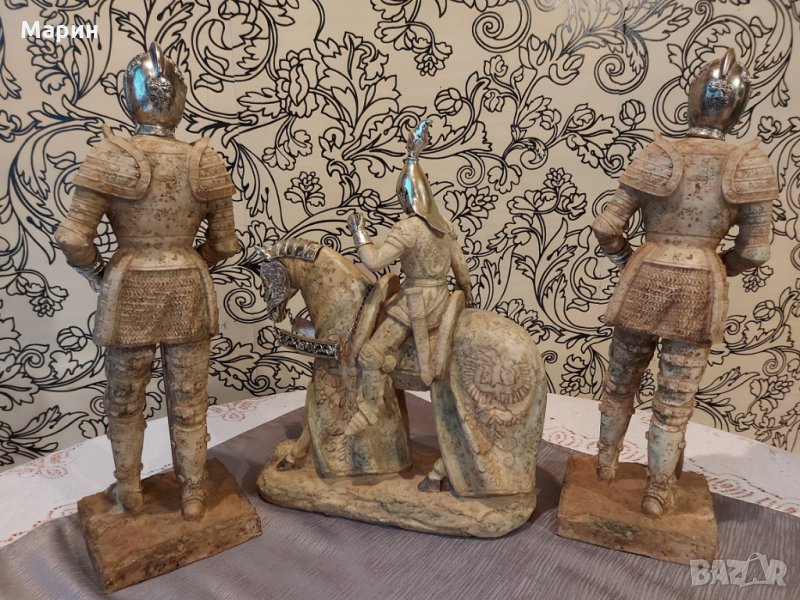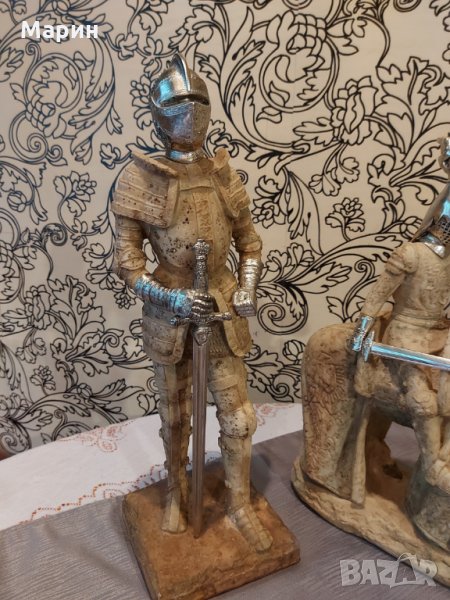 Лот рицарски статуетки за декор или колекция двата рицаря са с височина по 45см. конника е висок 39см. дължина 32см. Цената е за целият лот.