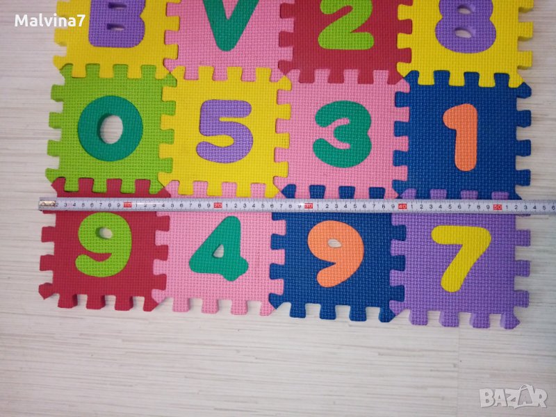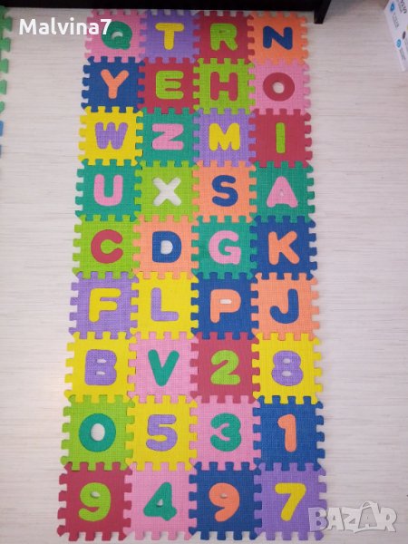 2. Гумен пъзел с английските букви и цифрите от 0 до 9 - 36 малки плочки, високо качество и плътност, размер около 120 / 53 см - 12 лв.