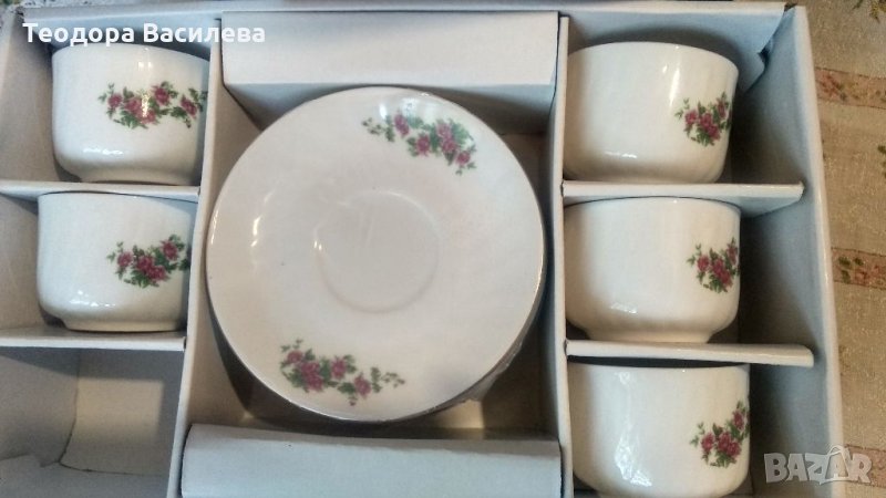 Чисто нов сервиз за чай с рози, марка Zarin Iran в оригиналната си опаковка, липсва една чашка. 5бр. чашки и 6 бр. чинийки. Вместимост 150ml. до ръба.