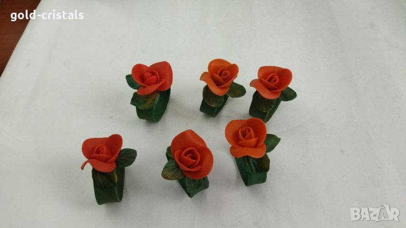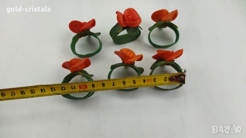 Рингове халки пръстени държачи поставки за салфетки салфетници ръчна изработка от студен порцелан красиви рози 6бр-120лв сервиз комплект сет лот ретро арт декор винтидж корекция стари антикварни предмети обзавеждане за дома и семейството подходящи за подарък за ценители и колекционери