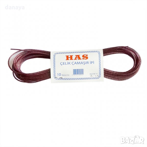 Метално въже за простиране на дрехи с PVC обвивка. Въжето е дълго 10 метра. Предлага се в 4 цвята – зелен, светло бежов, кафяв и син цвят. Дебелина на въжето: 1 mm.