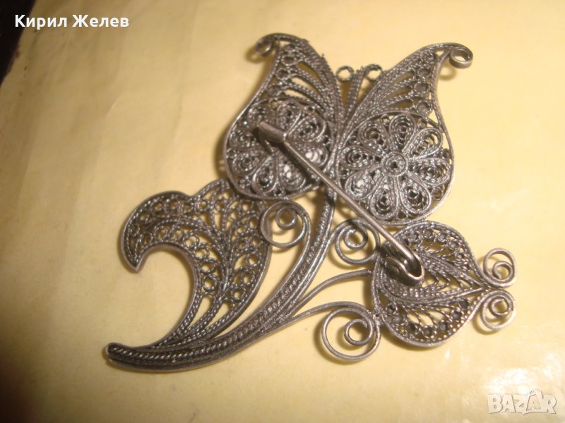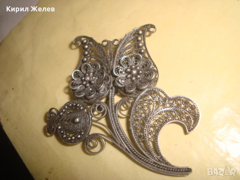 ИЗУМИТЕЛНО КРАСИВА ФИЛИГРАННА СРЕБЪРНА БРОШКА 19 ВЕК ВИСОКА ПРОБА СРЕБРО РЪЧНА РАБОТА БИЖУ 22626