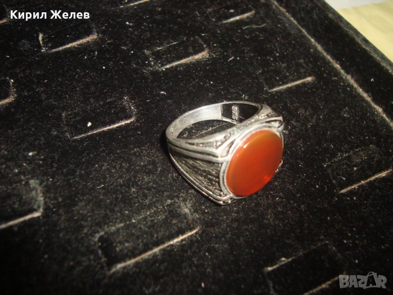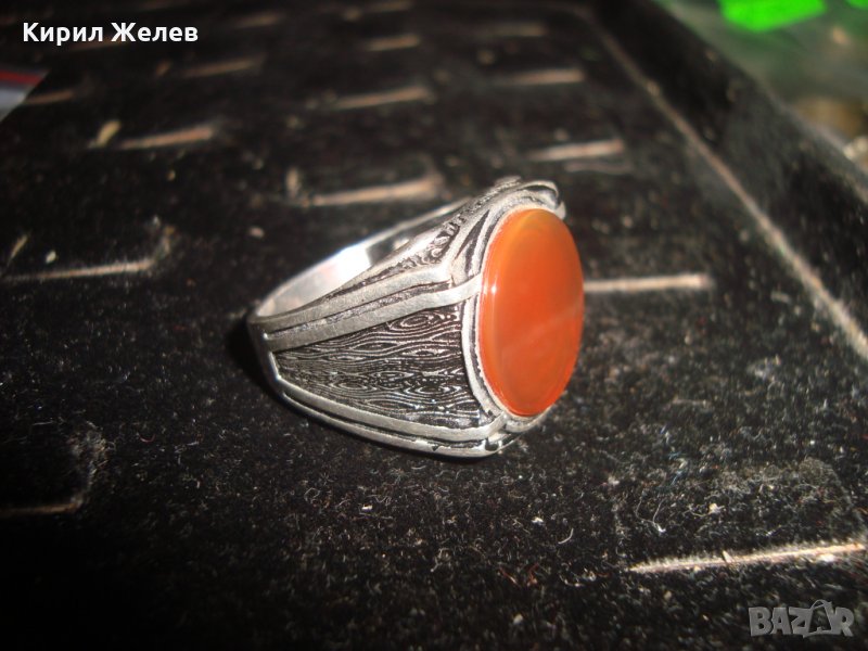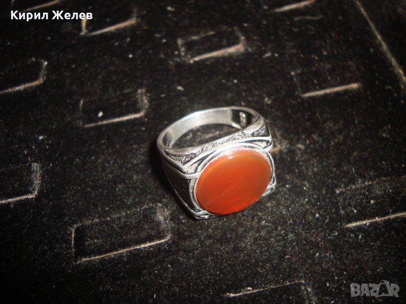 МАЙСТОРСКИ СРЕБЪРЕН МАСИВЕН ПРЪСТЕН с ШЛИФОВАН КАРНЕОЛ ОКСИДИРАНО СРЕБРО 925 ЮВЕЛИРНА ИЗРАБОТА 22380