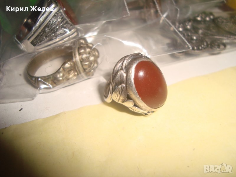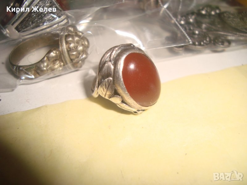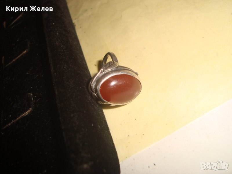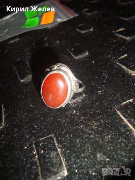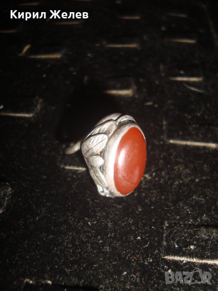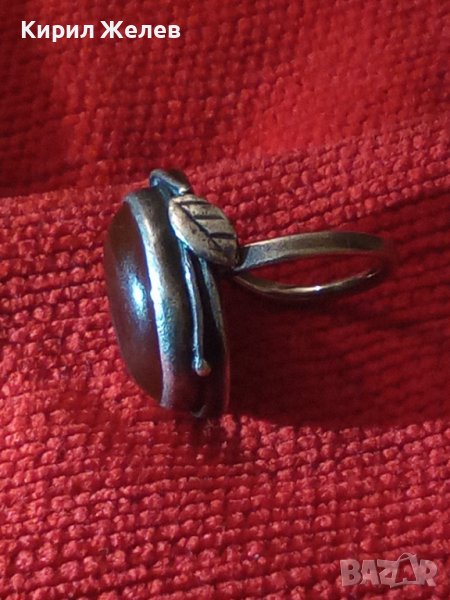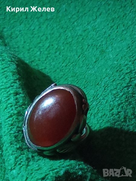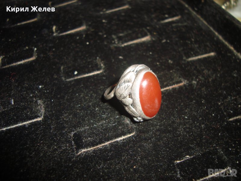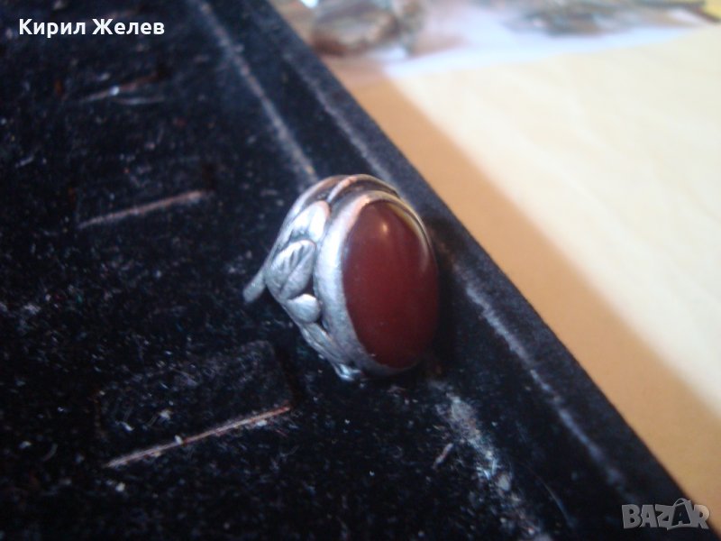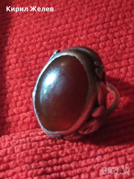 ВИНТИДЖ СРЕБЪРЕН КЕХЛИБАРЕН ПРЪСТЕН с ЧЕРВЕН КЕХЛИБАР СРЕБРО 925 ЮВЕЛИРНА СТАРА ИЗРАБОТКА 22480