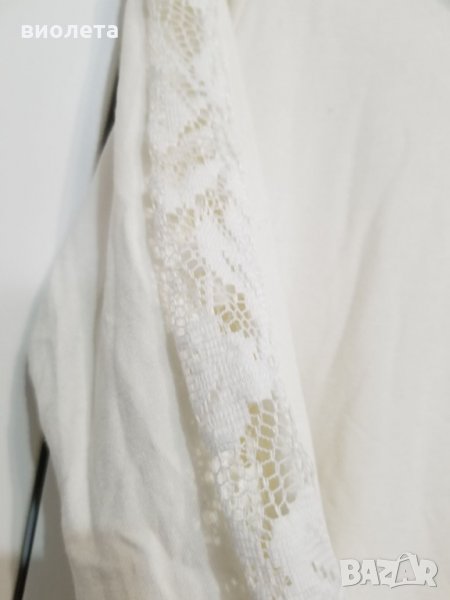 продавам красива бяла блузка с дантела отпред и на ръкавите.Нова,не е носена.Състав - 100 % вискоза.