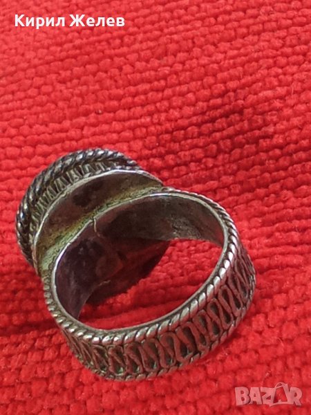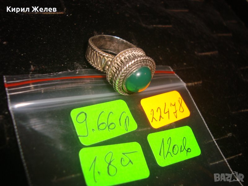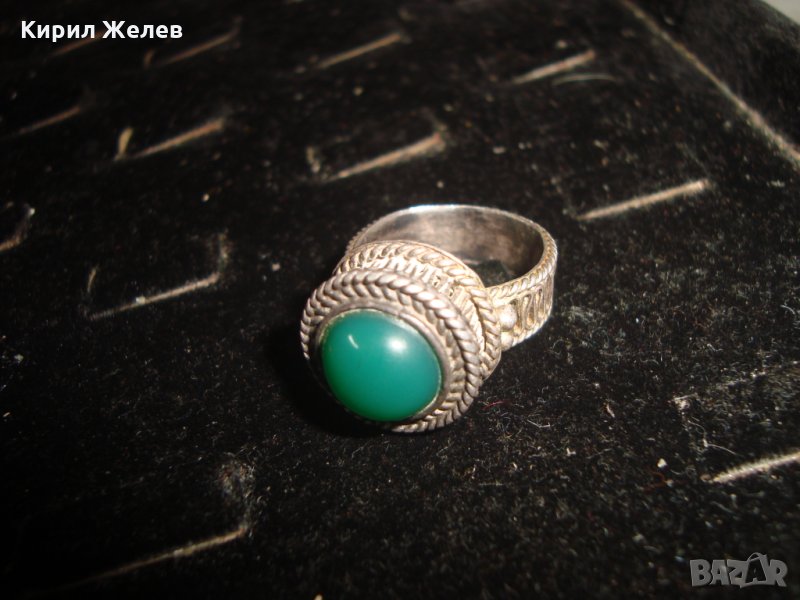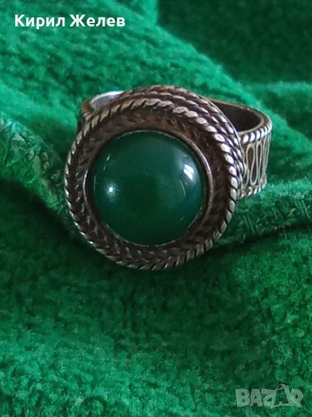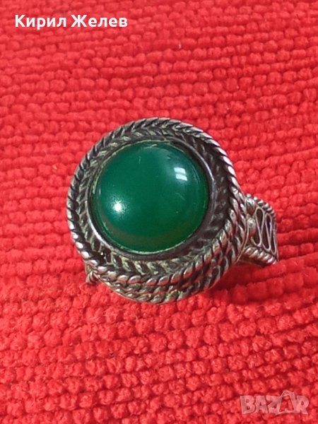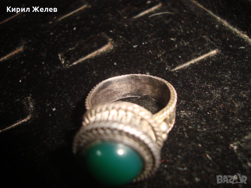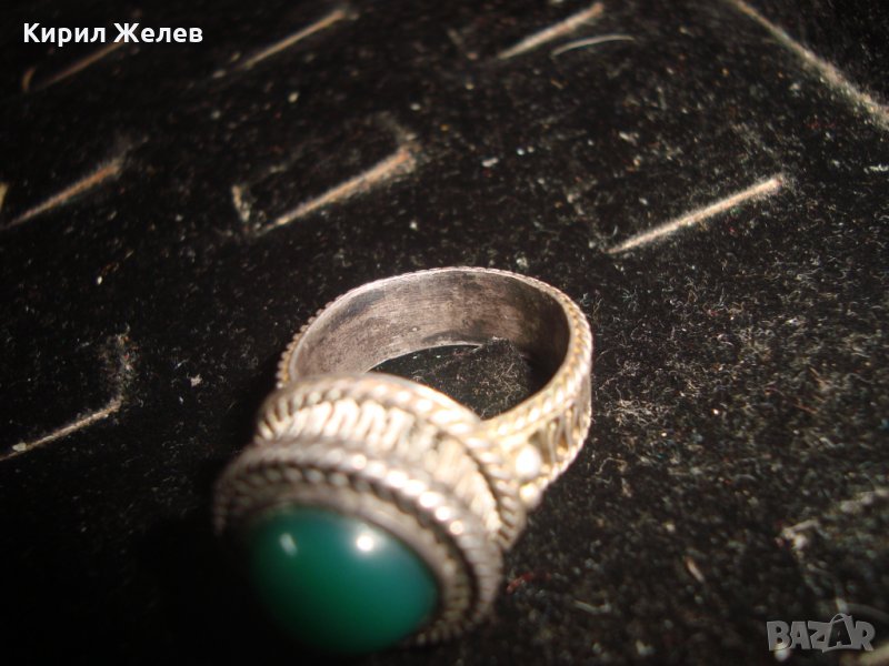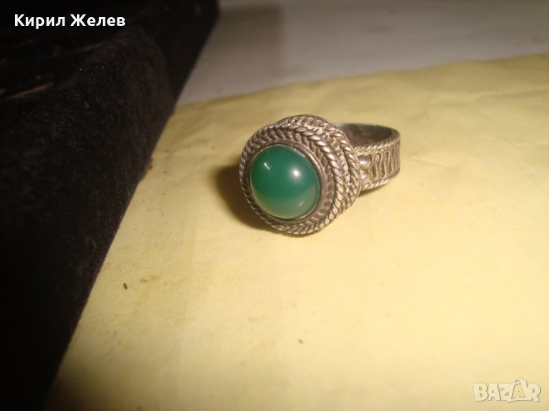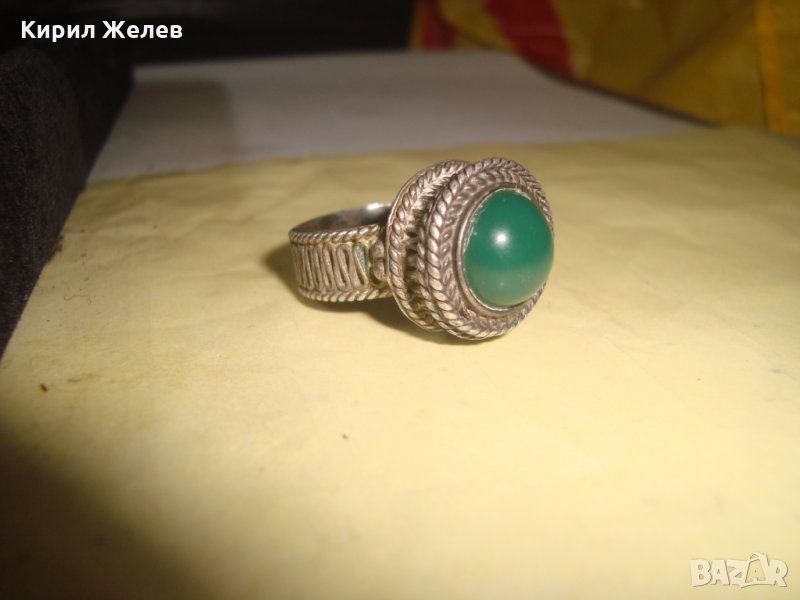 СРЕБЪРЕН СТАР 19 ВЕК ПРЪСТЕН с ГОЛЯМ ШЛИФОВАН КАМЪК ЗЕЛЕН АХАТ - СРЕБРО СТАРО ГРАДСКО БИЖУ 22478