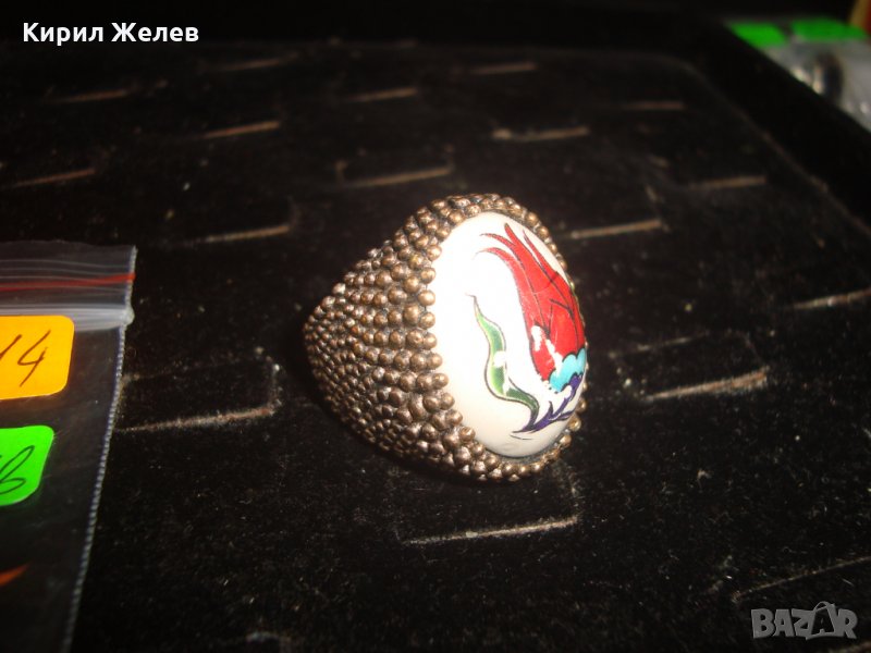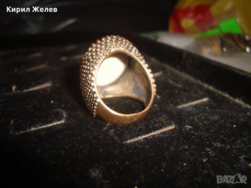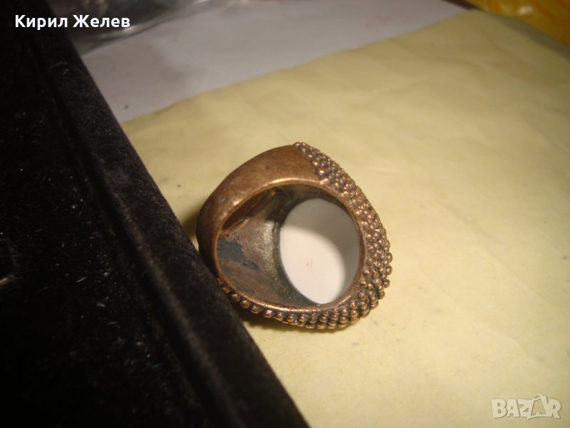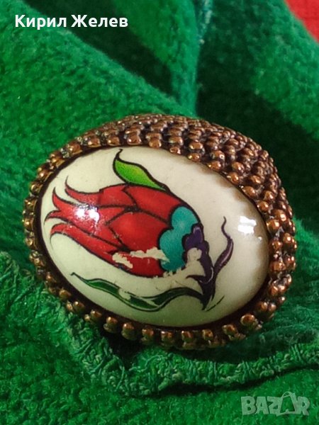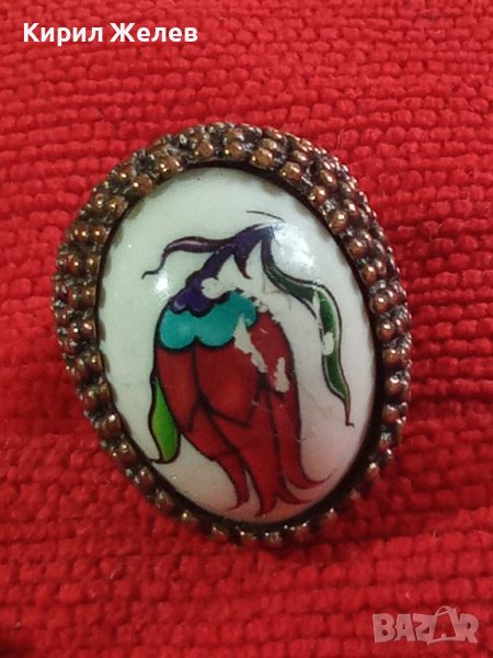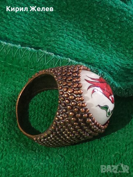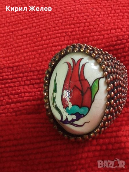 МАСИВЕН СТАР ВИНТИДЖ ПОЗЛАТЕН БРОНЗОВ ПРЪСТЕН РЯДЪК ОГРОМЕН РЪЧНО РИСУВАН ПОРЦЕЛАН 17114