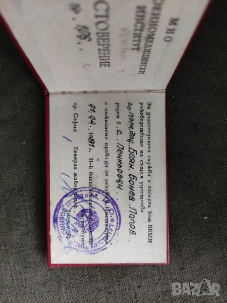 Продавам старо удостоверение МНО → Обява 33049644