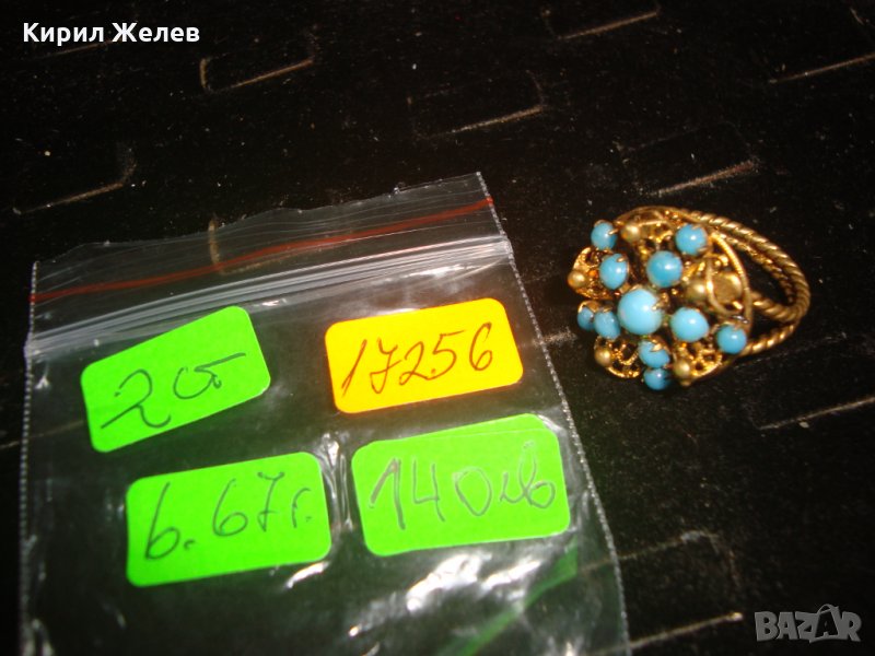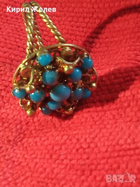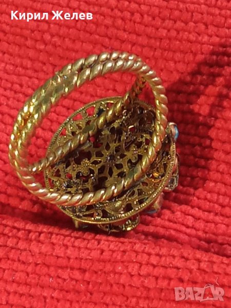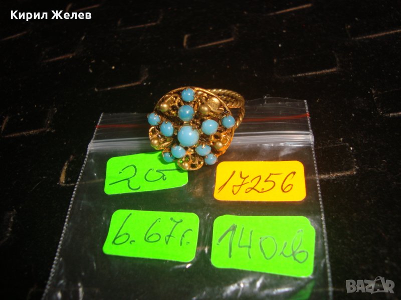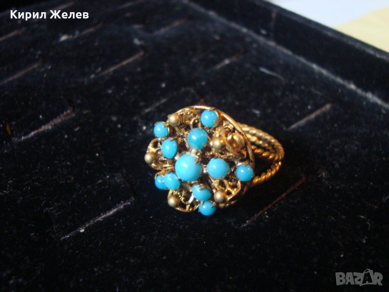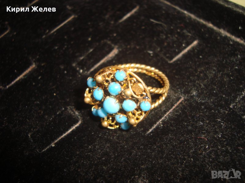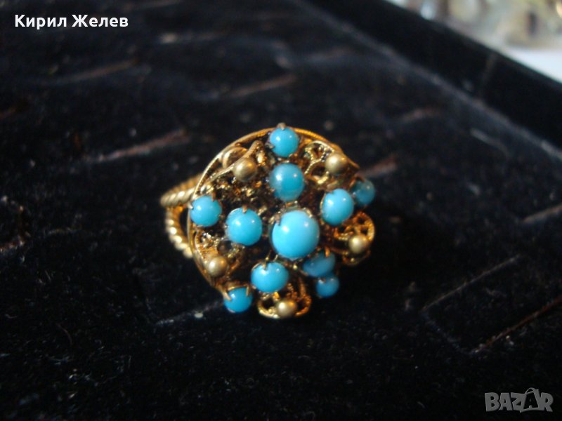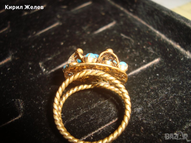 19 ВЕК ПОЗЛАТЕН ТЮРКОАЗЕН БРОНЗОВ ФИЛИГРАН ПРЪСТЕН СТАРО ГРАДСКО БИЖУ СТАР ЮВЕЛИРЕН УНИКАТ 17256
