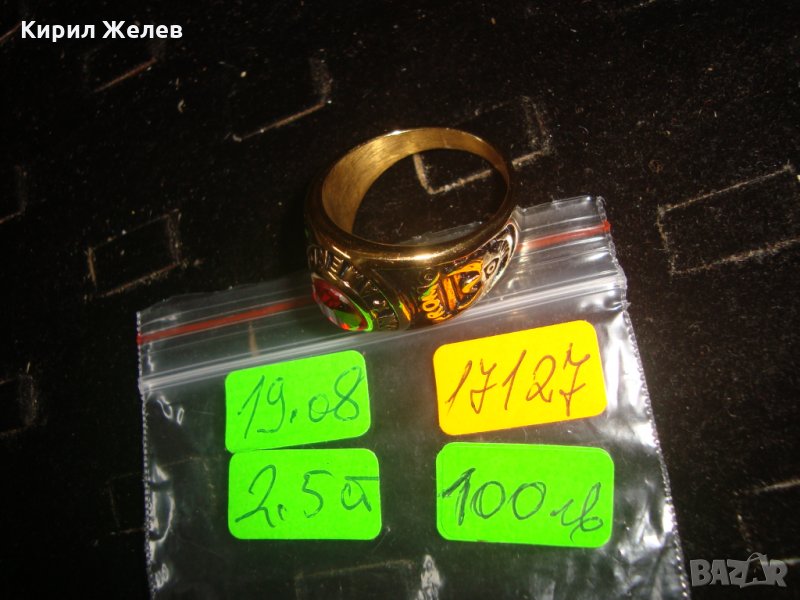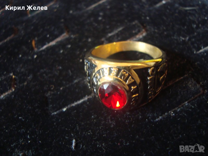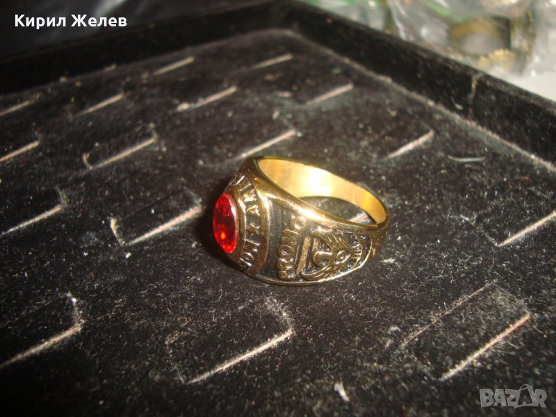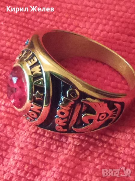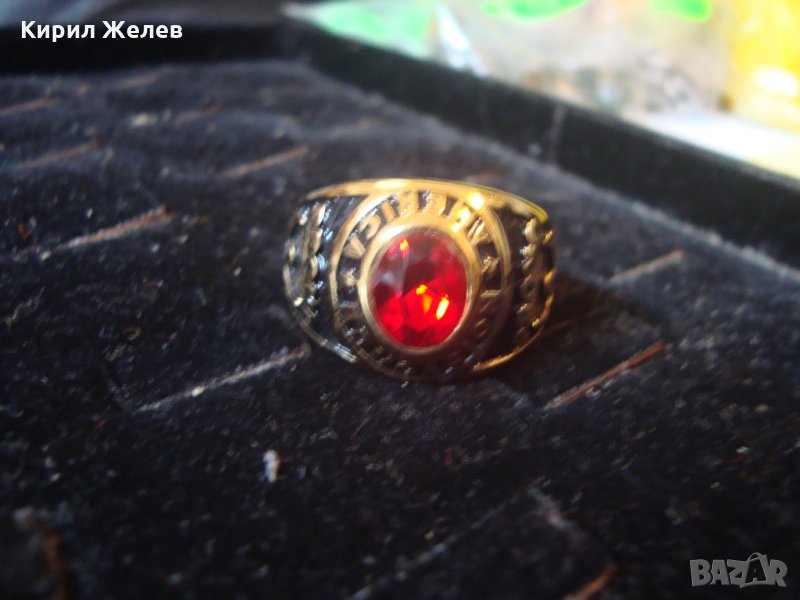 АМЕРИКАНСКИ КОЛЕЖАНСКИ РЯДЪК ПОЗЛАТЕН ПРЪСТЕН от БЛАГОРОДНА СТОМАНА с ФАСЕТИРАН РУБИН 17127