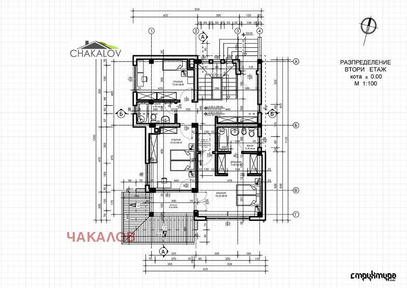 На втори етаж има спалня с дрешник и самостоятелна баня с тоалетна,две спални помещения с обща баня и тоалетна,тераса.