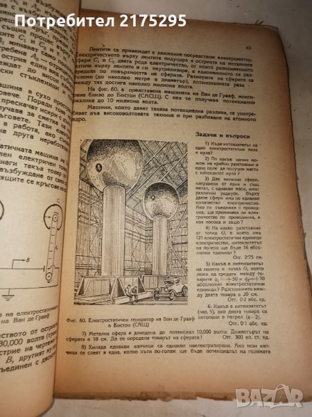 Физика за 7 ми клас на гимназиите-магнетизъм и електричество -издание1946г.Винтидж учебник с интересни илюстрации