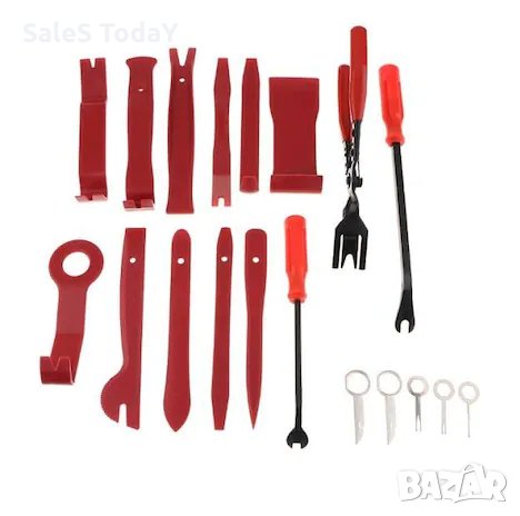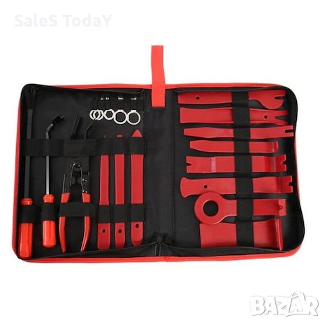 Комплект инструменти за интериора на автомобила - лесно премахване на части от облицовката, тапицерията, лайсни, панели на вратите и арматурното табло. Освен това този комплект от инструменти може да се използва и при ремонт на мебели от мека и твърда дървесина, реставрации на антики, тапицерия, кожа и др.