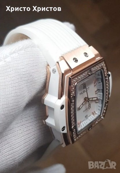 Ръчен часовник Hublot Spirit of Big Bang, кварц, стоманен корпус розово злато и каучукова каишка.