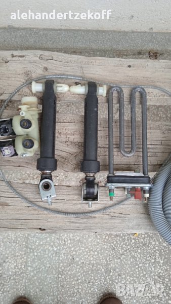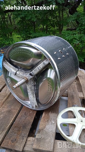 Казан от карборан и барабан с ремъчна шайба за автоматична пералня Индезит и Аристон 6 кг в отлично състояние - 130лв - продаден; барабан със счупена кръстачка 100 лв; ремъчна шайба - 50 лв; комплект лагери и семеринг - 30 лв; комплект винтове за циментова тежест - 15 лв; горна платка за управление - 50лв; люк капак вратичка - 60лв - продаден; амортисьори комплект - 15лв; нагревател с термопредпазители и термосонда - 15 лв; ниворегулатор - 23 лв; електромагнитен клапан - 10лв; долен маркуч с топче от казана към помпата - 30лв и входящ горен маркуч - 35лв и двата стават за indezit hotpoint ariston; казанче контейнер за препарат - 30лв; основа /кутия /за контейнера за препарат - 30 лв; пружина за уплътнението на люка - 10лв; изходящ маркуч - 10 лв; решетка за течен препарат - 5лв. Цените може да се коментират.
