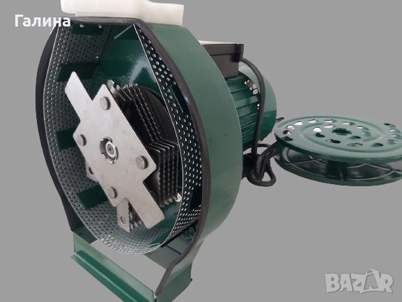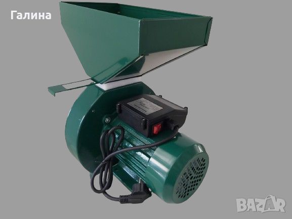 Електрическа фуражомелка 2 в 1. 2.5 kw пикова мощност, 3000 обороти/мин. С помощта на тази мелница можете да накълцвате както плодове, така и да мелете зърна в зависимост от монтираното ситото (ренде за плодове или главина с чукове).