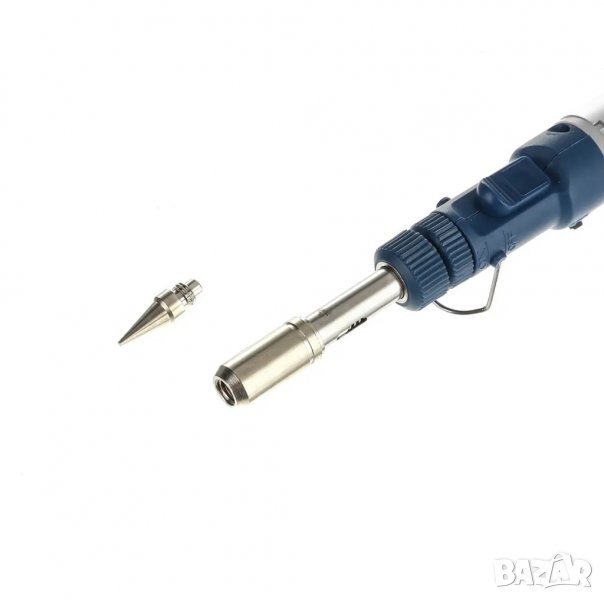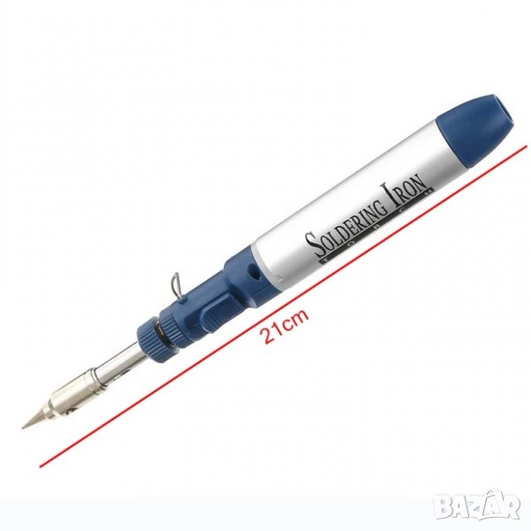 Газов поялник с температурата на пламъка която достига 1300 градуса Целзий. Захранването е с газ бутан и той не е включен в комплекта.