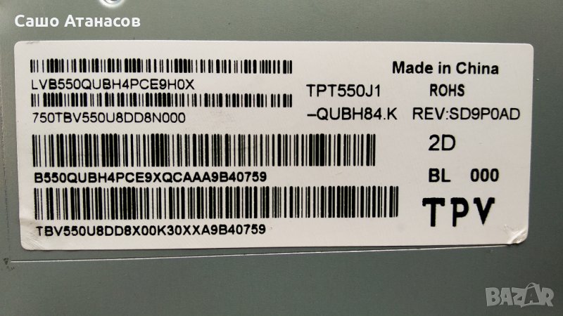 T-Con Board: HV550QUB-H82 / 55UHD RGB CPCB 47-6021263 - 85лв.