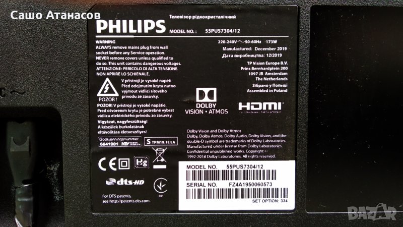 PHILIPS 55PUS7304/12 със счупена матрица ( TPT550J1-QUBH84.K REV:SD9P0AD )