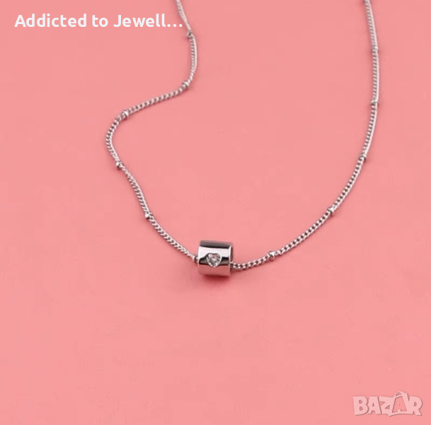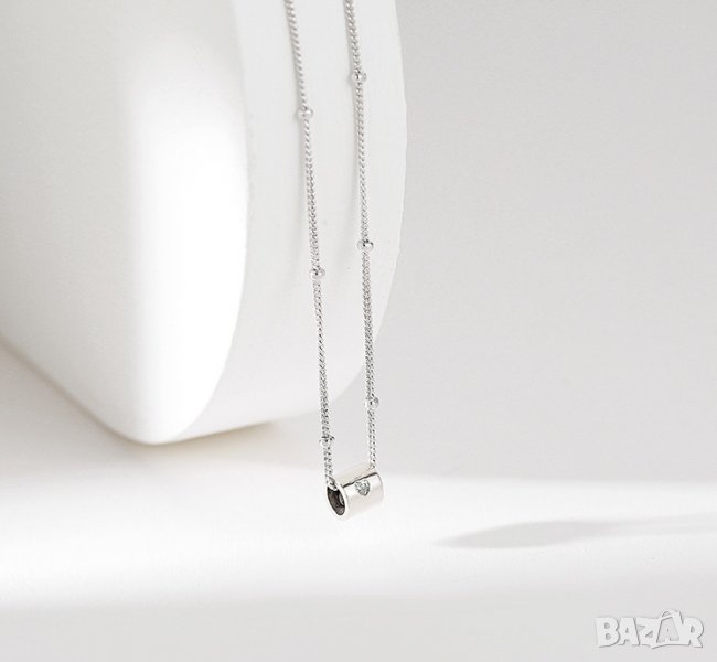 Много специално колие с цилиндрична висулка в която е инкрустиран циркон във формата на сърце