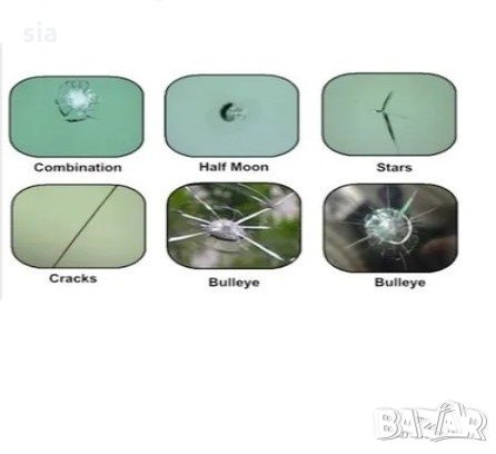 Лепило за стъкло, ремонтен комплект за спукани стъкла , Лапички, 6 части