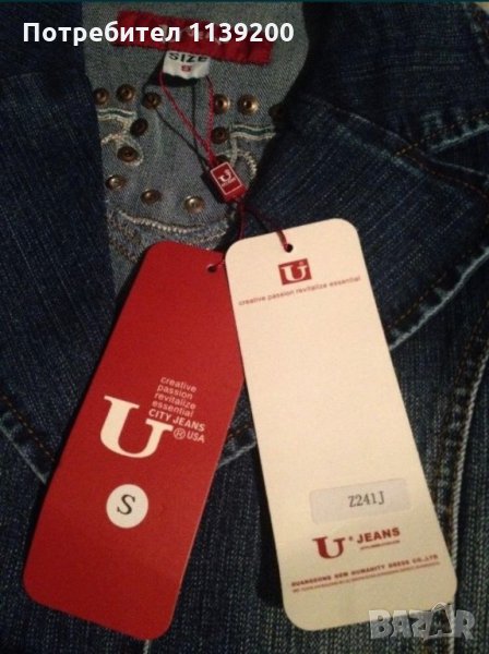 Ново дънково яке сако U Jeans етикет S камъни капси → Обява 33095804
