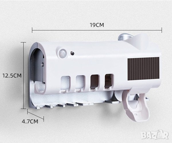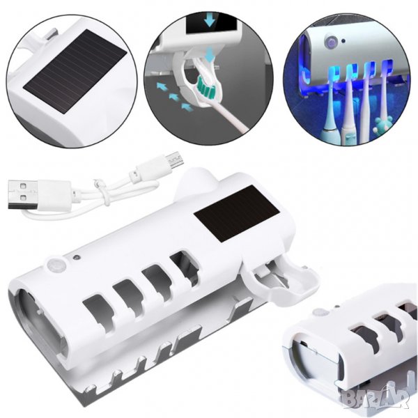 Този многофункционален диспенсер заедно със стерилизатор-кутия за четири четки за зъби е много удобна за използване в ежедневието ни.