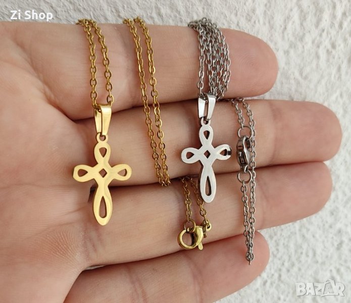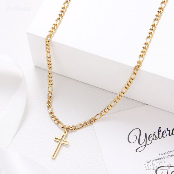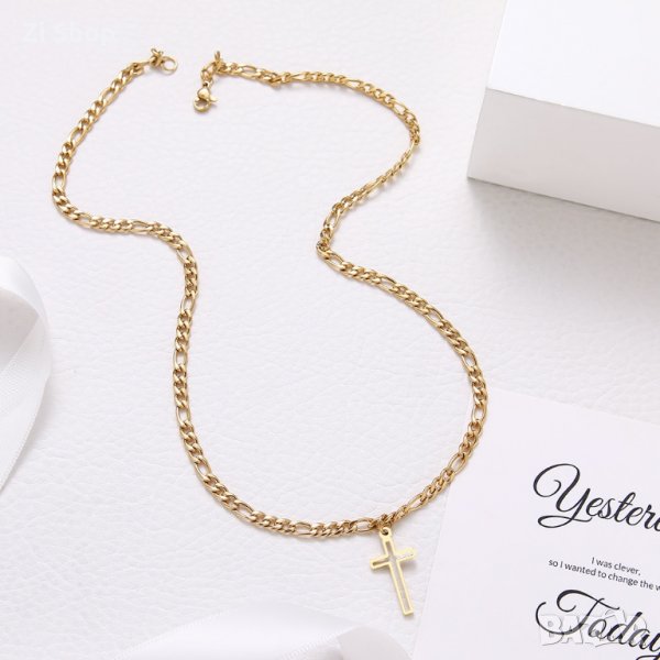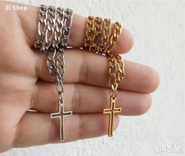 👑нежна верижка с кръстче кръст верижка ланец синджир златна злато златен сребърна сребърно сребърен → Обява 33104460
