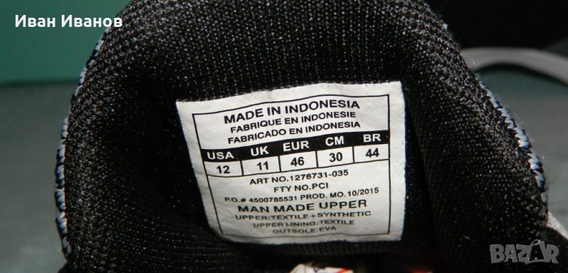 Дължина на стелката 29,5 см отговарящо на номер 45,5 , а по етикет са 46 ти